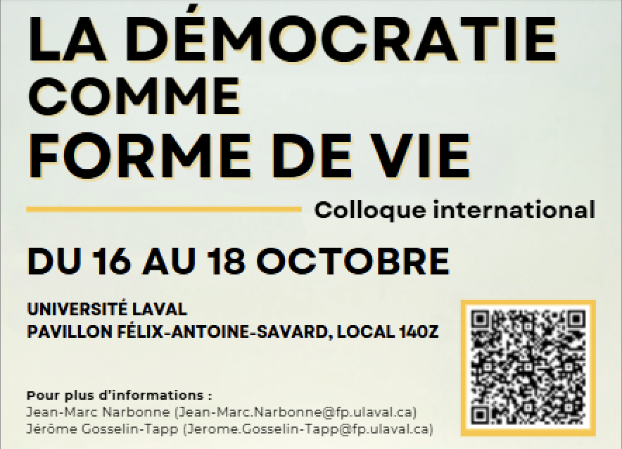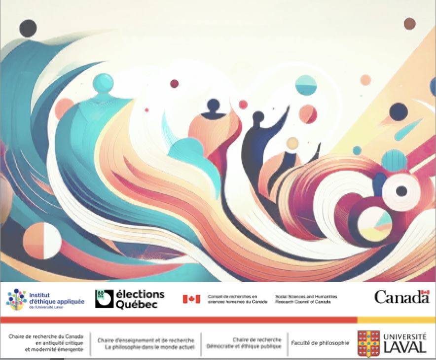 Table ronde sur la participation citoyenne à la vie démocratique dans le cadre du Colloque "La démocratie comme forme de vie" : Valérie partage ses réflexions de journaliste politique et engagée avec deux représentante d'élections Québec et un jeune chœur en philo politique :) et les chercheur.e.s et chercheurs participants :)